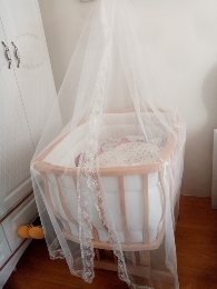 Made of Beech Wood. Cradle Color: Natural. Our products are rockable. (Fixed with stopper). There are 4 wheels. You can easily change places. Our products are produced in accordance with EU standards. TSE Certified. Package Includes: Cradle, mosquito net, side guards, pillow, quilt and mattress. (You can wash the sleeping set in the machine at 30 degrees in delicate, delicate washing mode.)