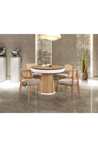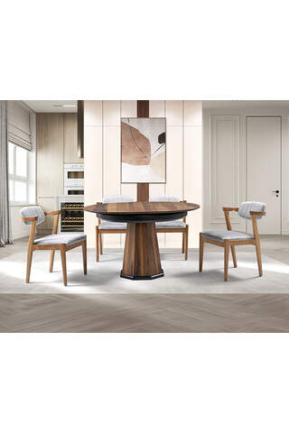 Begum Nature Round Table & Atlas Walnut Chair Set HDR1207