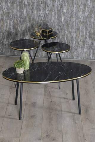 Tavolo centrale con gamba in ferro e set di tavolini a incastro Combinazione di 2 pezzi Il prodotto è tavolo centrale e 3 combinazioni di tavolini a incastro, 1