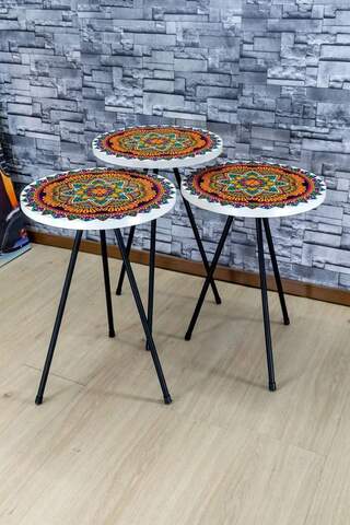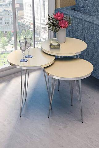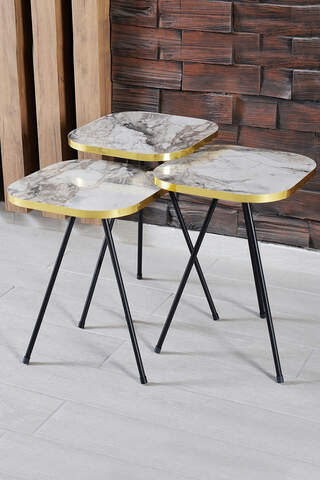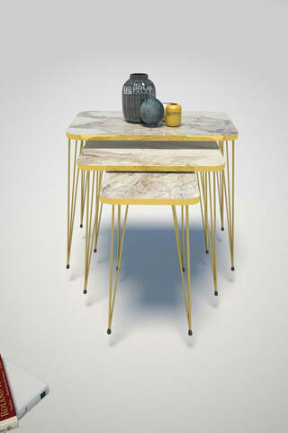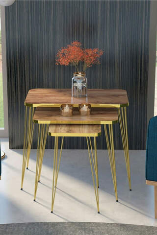 I suoi bordi sono rivestiti con nastro in PVC ORO di 1a classe. Tavolo centrale e 3 Nesting Nesting Table Vengono consegnati in totale 4 pezzi.Il materiale util