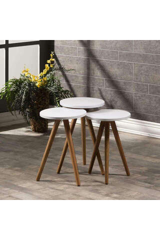 Tavolo impilabile 3 pezzi gamba tornita in legno bianco