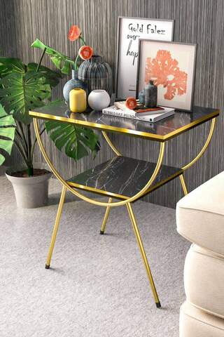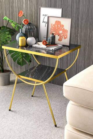Comodino da comodino Nero-Oro Gamba in metallo a doppia striscia Gold Efes