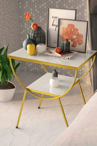 Tavolo a incastro Gamba in metallo bianco doppio oro
