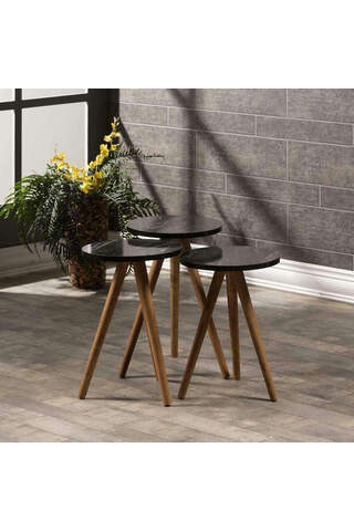 Tavolo a incastro 3 pezzi Gamba tornita in legno Modello in marmo nero