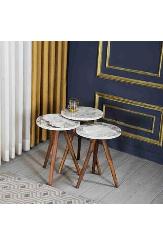 Set di 3 tavolini in legno con gamba tornita in oro Bendir
