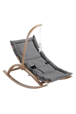 Ahşap Gri Hamak, kayın ağacından üretilmiş standı ile sağlam ve taşınabilir. Bebeğiniz için anne rahmi benzeri bir konfor ve omurga destekli yatış pozisyonu sağlar.