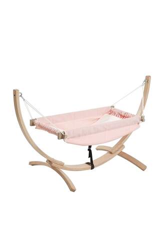 Doğal Ahşap Pembe Hamak, kayın ağacından üretilmiş standı ile sağlam ve taşınabilir. Bebeğiniz için anne rahmi benzeri bir konfor ve omurga destekli yatış pozisyonu sağlar.