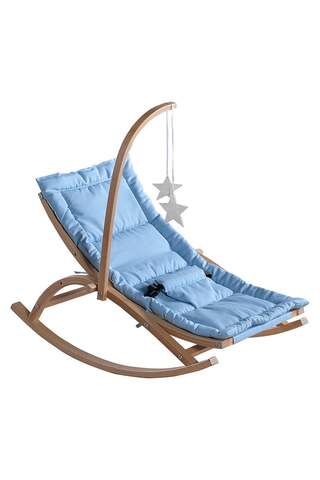 Ahşap Mavi Hamak, kayın ağacından üretilmiş standı ile sağlam ve taşınabilir. Bebeğiniz için anne rahmi benzeri bir konfor ve omurga destekli yatış pozisyonu sağlar.